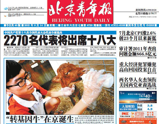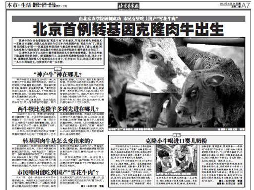 北京首例转基因克隆肉牛出生