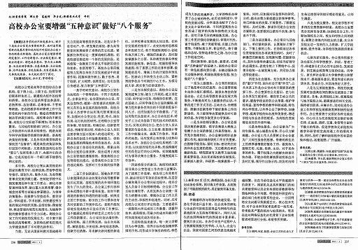 面对新形势、新任务、新要求,在增强“五种意识”的基础上,高校办公室应有一种危机感和责任感,由被动服务向主动服务转变,积极拓展服务范围,努力做好“八个服务”。