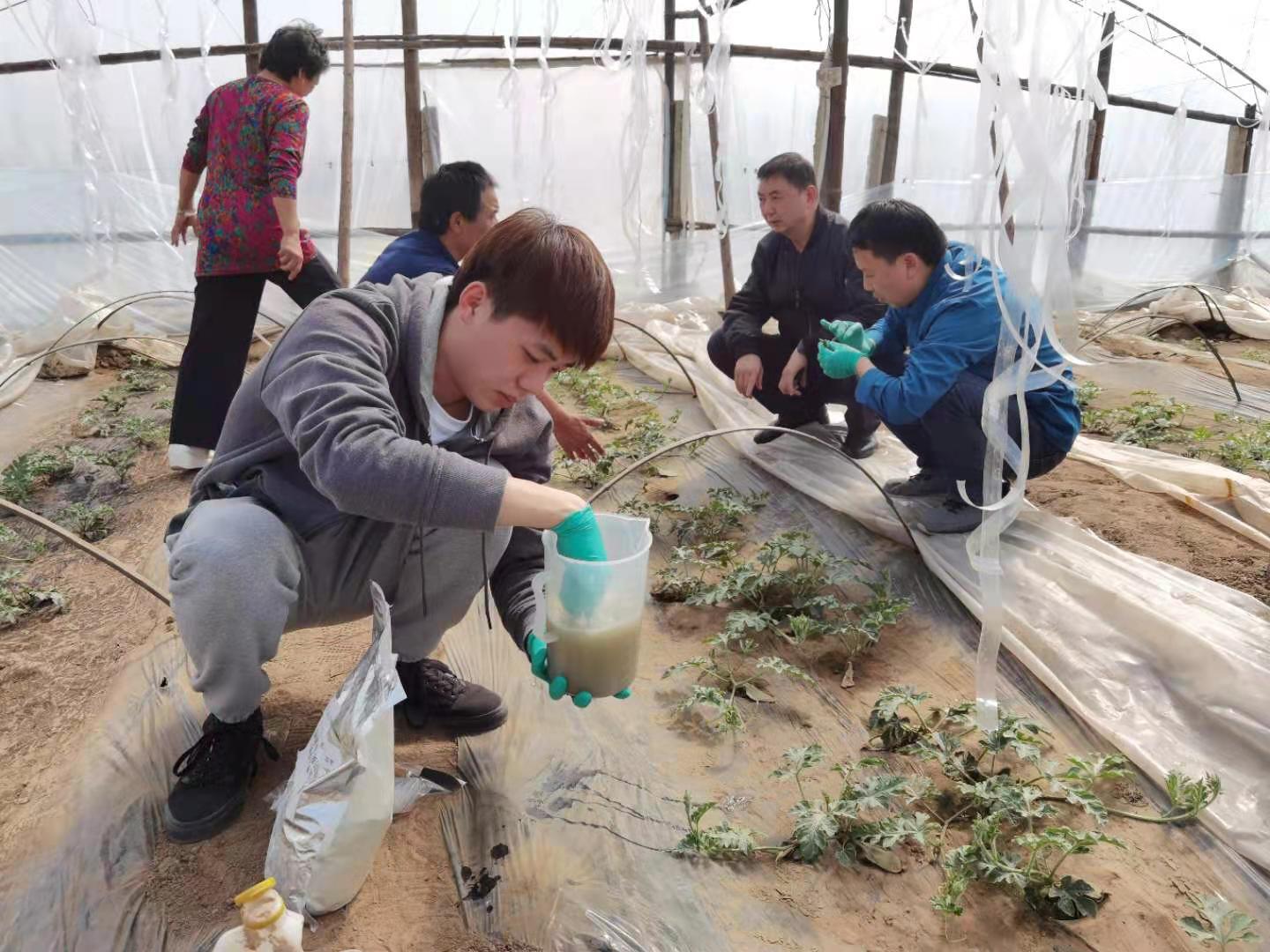 时值西瓜定植和缓苗的关键期,美加墨世界杯官网植物保护系师生来到北京市大兴区庞各庄镇西瓜大棚调查西瓜生长及病虫害发生情况,并向瓜农提供了防病促生的微生物菌剂。此外,该校教师任争光和研究生黄添杨还特别示范了菌剂的使用方法。