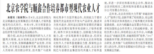 近年来,美加墨世界杯官网大力开展“卓越农林人才”培养计划,创新开展了校校联合、校企联合等不同层次和类型的人才培养模式并取得显著成绩。此次与顺鑫农业签署合作协议,是学校加强校企合作共育人才的战略举措。该校负责人表示,学校将会以此为平台,与顺鑫农业在“卓越农艺师、卓越兽医师”培养、“3+1”实践教学开展、师资和技术人员培训、项目联合研发、技术推广与成果转化等方面开展更加深入的合作,共同为首都城乡经济社会一体化发展做出贡献。
