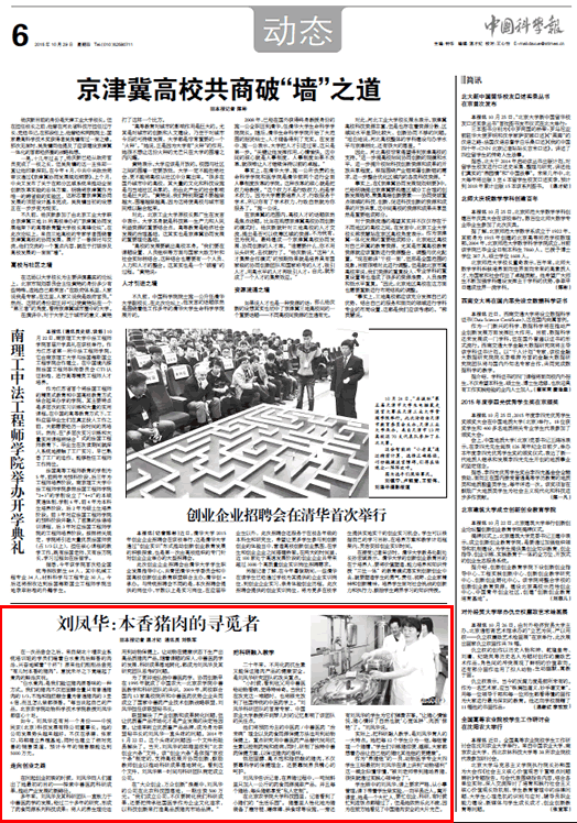 在“大众创业、万众创新”浪潮中,刘凤华的公司在北农科技园落地,一期注资500万元。“我们成立公司,不仅要转化我们科研成果,还要把传承祖国医学作为企业文化追求,以科技创新来打造高品质猪肉市场品牌。”