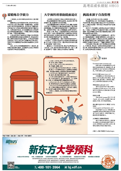 高三学生们想象中的大学生活是自由的、无拘无束的。于是,高考结束后,很多学生都计划要利用这个暑假好好放松一下,出门旅游、打工实践……但大学里的学姐学哥们却发出了警告,大学生活并非想象中的那么自由、轻松。诸多的变化会令高三学生刚进入大学门槛时有很多不适应,因此,不妨利用暑假的时间,试着为大学生活做准备。