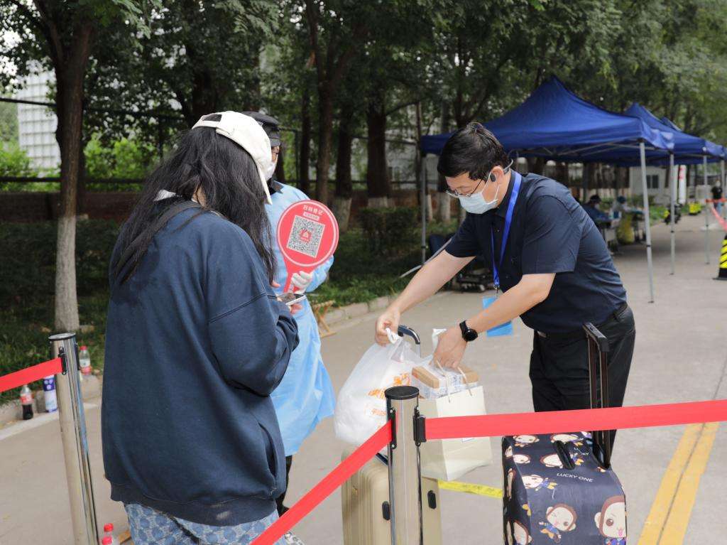 在学生返校现场,坚守岗位的党员、干部、教工们正在疏导交通、帮学生搬运行李、核酸检测信息录入、维持秩序、解答咨询问题……党员们用实际行动为返校学生筑起了一道安全“防线”。