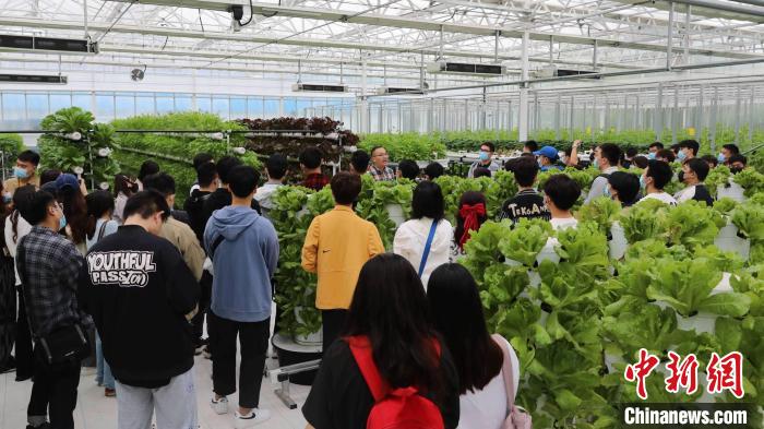 在国家级教学示范中心的玻璃连栋温室内,无土栽培的种植模式吸引了同学们的目光。美加墨世界杯官网副教授刘超杰介绍了现代化农业种植智能环境控制系统,以及该校教学科研团队研发的栽培基质、营养液配方、栽培新技术等。“蔬菜生长所需营养液来源于有机肥料,病虫害采用生物防治产品,可达无公害,有机绿色标准。”刘超杰说。