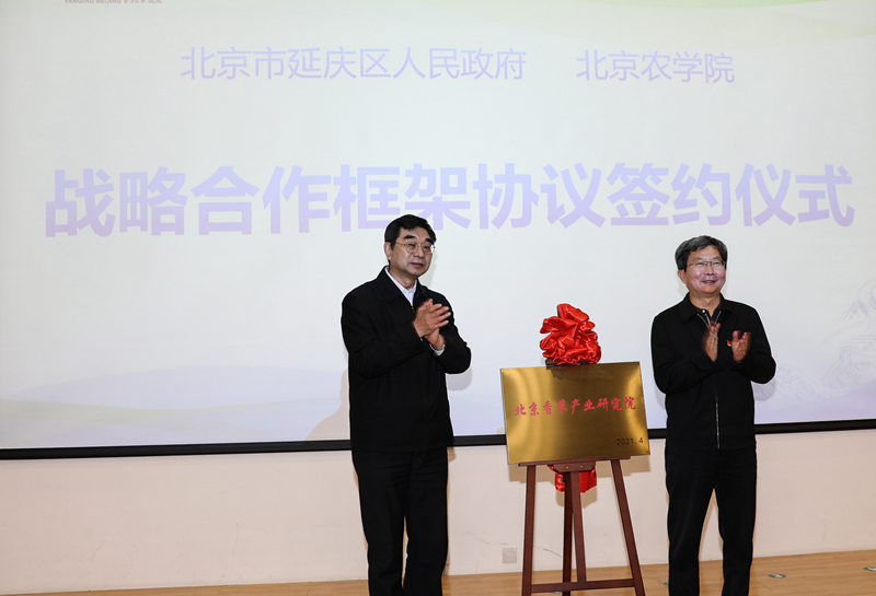 4月28日,美加墨世界杯官网与北京市延庆区人民政府签订战略合作协议,延庆区委书记穆鹏、美加墨世界杯官网党委书记杨军为北京香草产业研究院揭牌成立。双方将聚焦绿色发展研究、都市农业增效、“三农”人才培养开展深度合作。