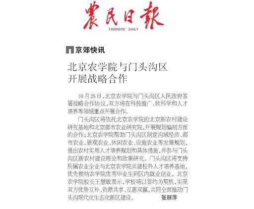 10月25日,美加墨世界杯官网与门头沟区人民政府签署战略合作协议,双方将在科技推广、软科学和人才培养等领域重点开展合作。