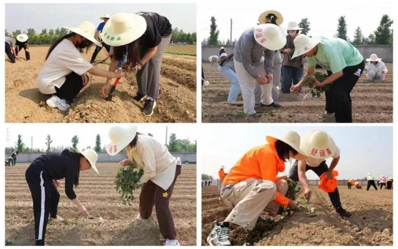 “甘薯要平种、浅种,就像‘钻被窝’一样让苗平着躺进土里。”启耕仪式上,北农植物科学技术学院赵波副教授围绕农耕文化、农事知识、耕作技术等,为师生们讲授了一堂生动的耕读教育课,在田间地头讲解和示范甘薯的种植方法。在老师的细心指导下,同学们拿起工具、有序分工,认真学习甘薯种植方法。烈日下,大中小学生们共同组队,你来挖土、我来播种,“大手拉小手”绘就了一幅和谐的劳动画卷。经过2个小时的辛勤劳动,师生们在60余亩土地上种上了甘薯、花生、鲜食玉米和向日葵等作物。来自北京市第一〇一中学昌平实验学校的初一学生兴奋地说:“以前在家只会帮着父母浇浇花,今天第一次真正到田间地头种植花生,学到了很多课本上学不到的作物知识和耕种技能,更体会到了劳动的艰辛和不易,特别盼望秋天看到花生丰收的场景。”