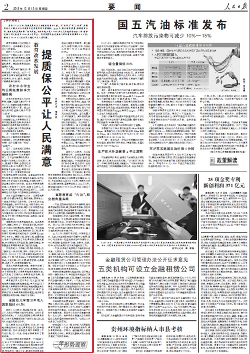 宇下者知屋之漏雨否,草野者知政之得与失,对于一年来教育改革发展的新成就,城乡的教师、学生、家长,基层的干部感受最为深刻。