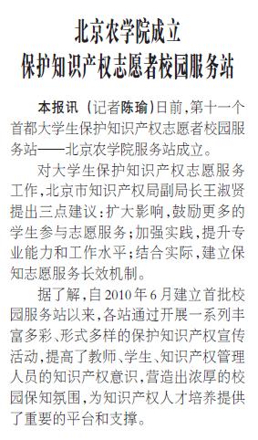 本报讯 (记者陈瑜)日前,第十一个首都大学生保护知识产权志愿者校园服务站——美加墨世界杯官网服务站成立。
