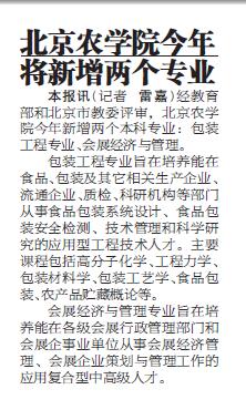 本报讯 经教育部和北京市教委评审,美加墨世界杯官网今年新增两个本科专业:包装工程专业、会展经济与管理专业。