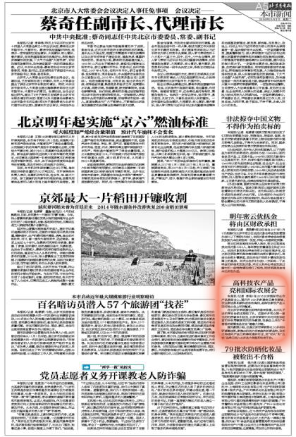 在2016北京国际农业农产品展览会上,国内外300多家展商云集农展馆,农业新成果和新科技纷纷亮相,各种创新农产品从田间地头走上市民餐桌。