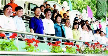 除了国旗班,60名女孩组成的拉拉队的表演也吸引了大家的眼球。在赛场上,女孩们用优美舞姿先后组成了同心圆队形、不规则菱形、“九”字队形、“十”字队形,象征足球队团结进取精神,奋斗创新精神,暗含着社区足球争冠赛九九归一、十全十美之意。表演最后,60名女孩组成了一张圆满笑脸,祝愿北京“燕京啤酒杯北京晚报·北京社区足球联盟争冠赛”圆满成功。
