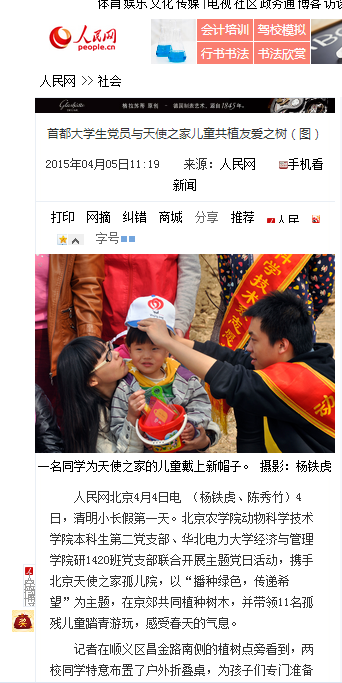 人民网北京4月4日电 (杨铁虎、陈秀竹)4日,清明小长假第一天。美加墨世界杯官网动物科学技术学院本科生第二党支部、华北电力大学经济与管理学院研1420班党支部联合开展主题党日活动,携手北京天使之家孤儿院,以“播种绿色,传递希望”为主题,在京郊共同植种树木,并带领11名孤残儿童踏青游玩,感受春天的气息。