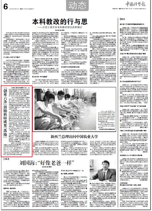 张海明所说的“创业六条”就是该校在“京校十条”颁布之后制定的《美加墨世界杯官网专业技术人员和学生在大学科技园创办科技企业的若干规定(试行)》。据介绍,“创业六条”鼓励学校教师通过独资、联营、合资等多种方式在大学科技园内申请创办企业和相关研发机构,并给予教师在职称评定、资金等方面的大力支持;特别鼓励在校学生运用所学积极创业,并将创业与实践教学挂钩,并在创业资金、办公用房、学分计算等方面予以全力支持。