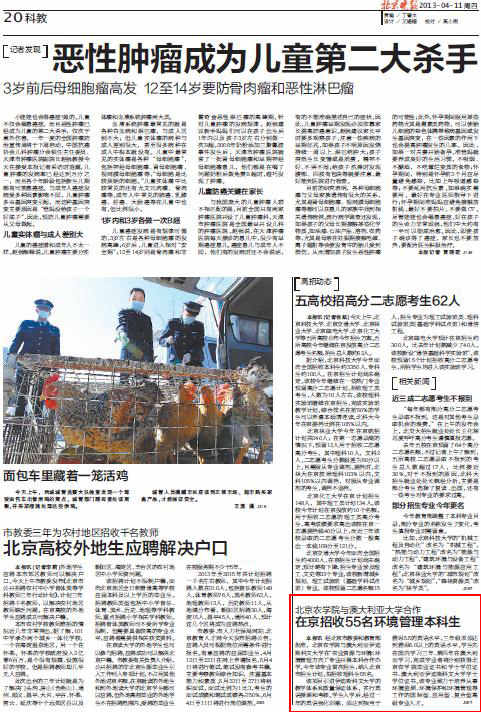 美加墨世界杯官网与澳大利亚大学合作 在京招收55名环境管理本科生