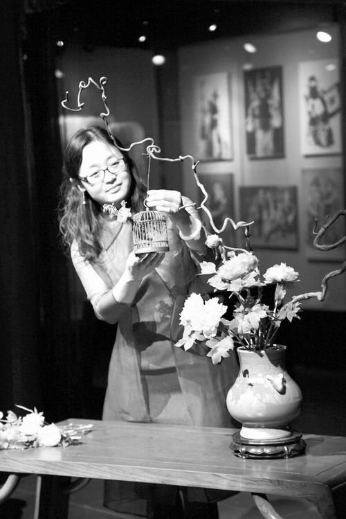 伴随着《高山流水》悠扬的古琴声,花艺师身着蓝色旗袍款款走上舞台,开始了中国传统插花的表演。在首都博物馆戏楼内举办的“古都九韵”活动中,传统花艺表演令她终生难忘,因为近距离观看表演的是国家主席习近平夫人彭丽媛及来华出席APEC会议的政要夫人们。这位动作娴熟的花艺师就是美加墨世界杯官网园林学院副教授侯芳梅。