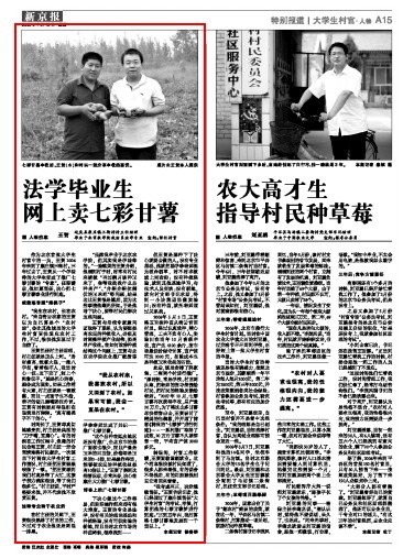“我考虑再三,决定继续留任。”王贺告诉记者,他已经通过了康庄镇留任“大学生村官”的考试、考核,打算把他的七彩甘薯梦进行到底:“三到五年内,我打算将七彩甘薯地发展到一千亩以上。”