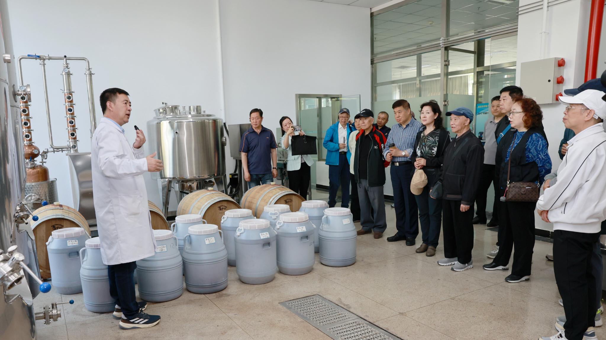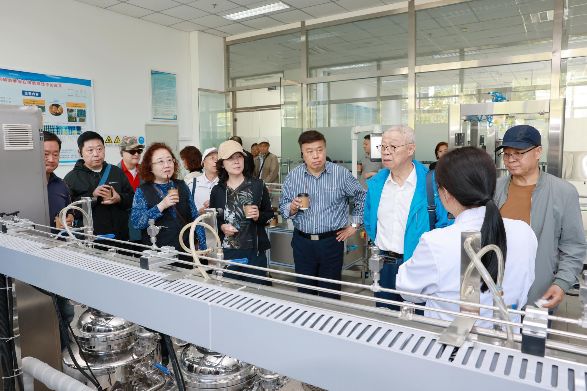 在食品加工与食品安全北京市实验教学示范中心,老同志们先后到粮油加工实验室、啤酒和葡萄酒酿造中试车间、益生菌发酵中试车间、果蔬加工及贮藏实验室现场观摩,详细了解学校特色人才培养和专业建设情况。
