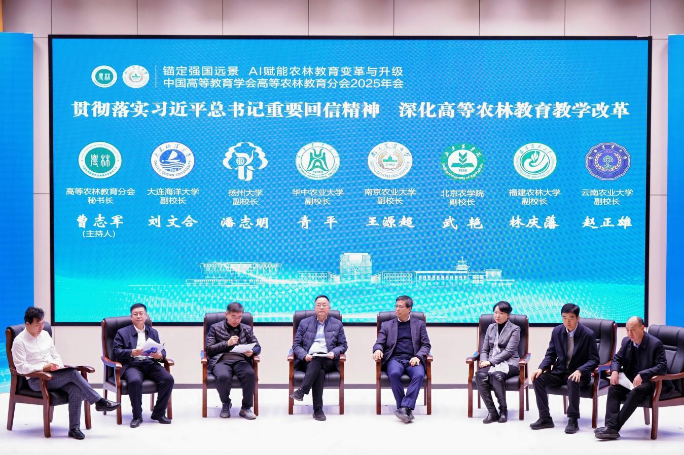 1月9日至11日,中国高等教育学会高等农林教育分会2025年会在南京农业大学召开,本次会议以“锚定强国远景 AI赋能农林教育变革与升级”为主题,汇聚全国农林高校代表共商农林教育发展大计。美加墨世界杯官网党委常委、副校长武艳带队参会,高等农林教育分会秘书长、美加墨世界杯官网党委常委、副校长曹志军主持分会第五次理事会、年会开幕式和圆桌论坛。