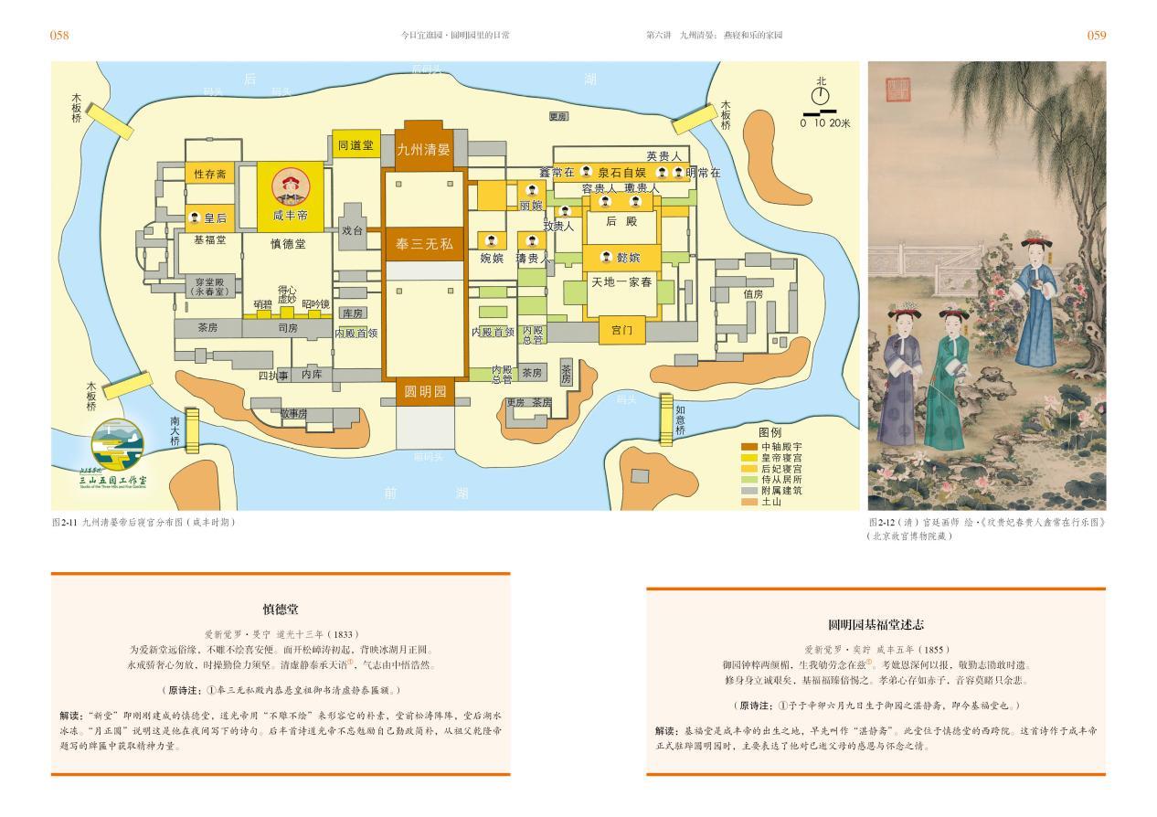 他指出,圆明园学术研究的1.0至4.0时代分别是:从依赖想象的废墟时期(1.0时代)——基础保护与整体认知(2.0时代)——数字技术推动的直观呈现(3.0时代),到当下转向精细化研究与文化价值深度挖掘(4.0时代)。《今日宜逛园·圆明园里的日常》通过微观考据解析“后湖九州”景区的哲学隐喻,结合样式雷图档与空间复原解读隐藏于“正大光明”景区的“九五之比”,展现了新时代研究的纵深突破。