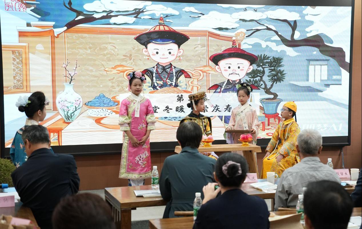 活动现场,北京市八一学校小学生表演的情景剧《四时天伦·圆明园里的家国温度》成为亮点。作为《圆明园里的日常》一书的小读者,小学生们通过戏剧的角色扮演,生动演绎了圆明园中四组真实历史人物在四季中的家庭生活场景,包括父子交谈、为母祝寿、家庭团聚和后妃游园,唤起了在场观众的情感共鸣。小学生们度过了一个难忘而具有特别意义的世界读书日。