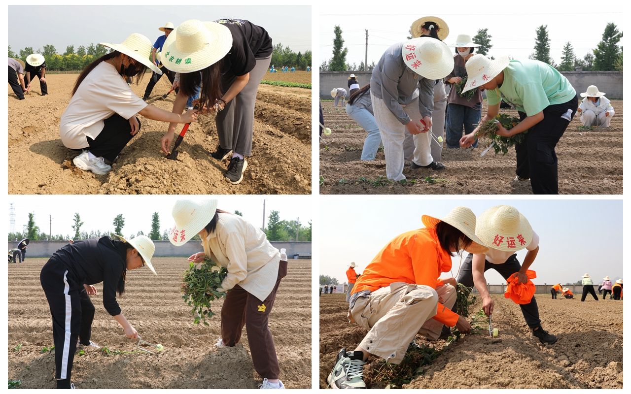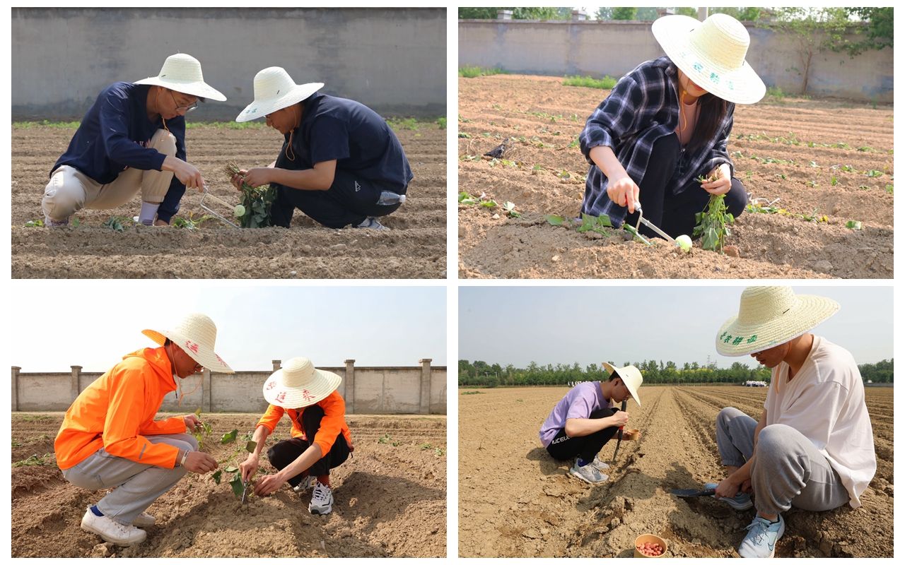 虽然天气炎热,但大学生与中、小学生共同组队,你来挖土、我来播种,不怕苦、不怕累,“大手拉小手”绘就了一幅和谐的劳动画卷。经过2个小时的辛勤劳动,500余名师生在60余亩土地上种上了甘薯、花生、鲜食玉米和向日葵等。