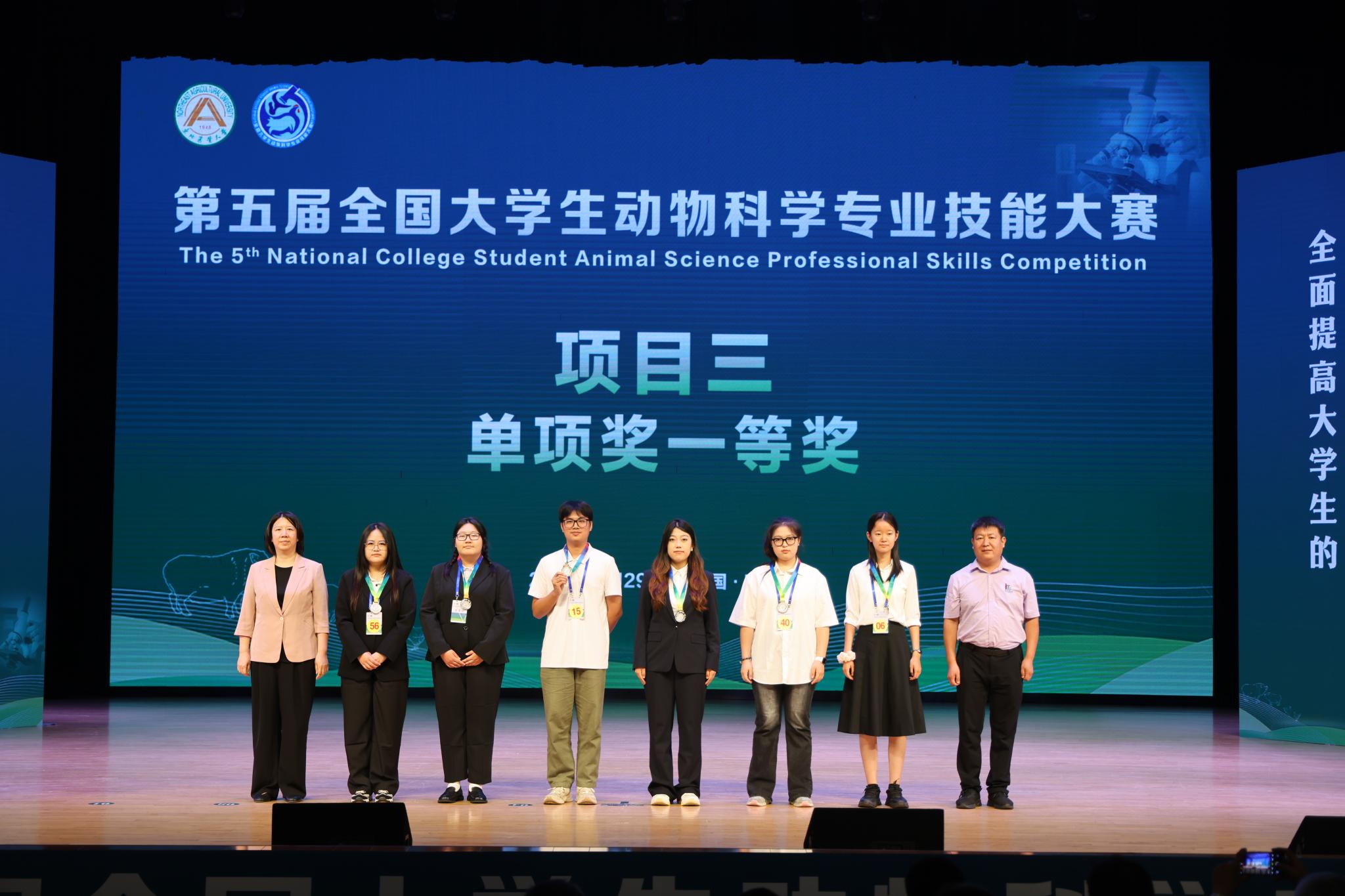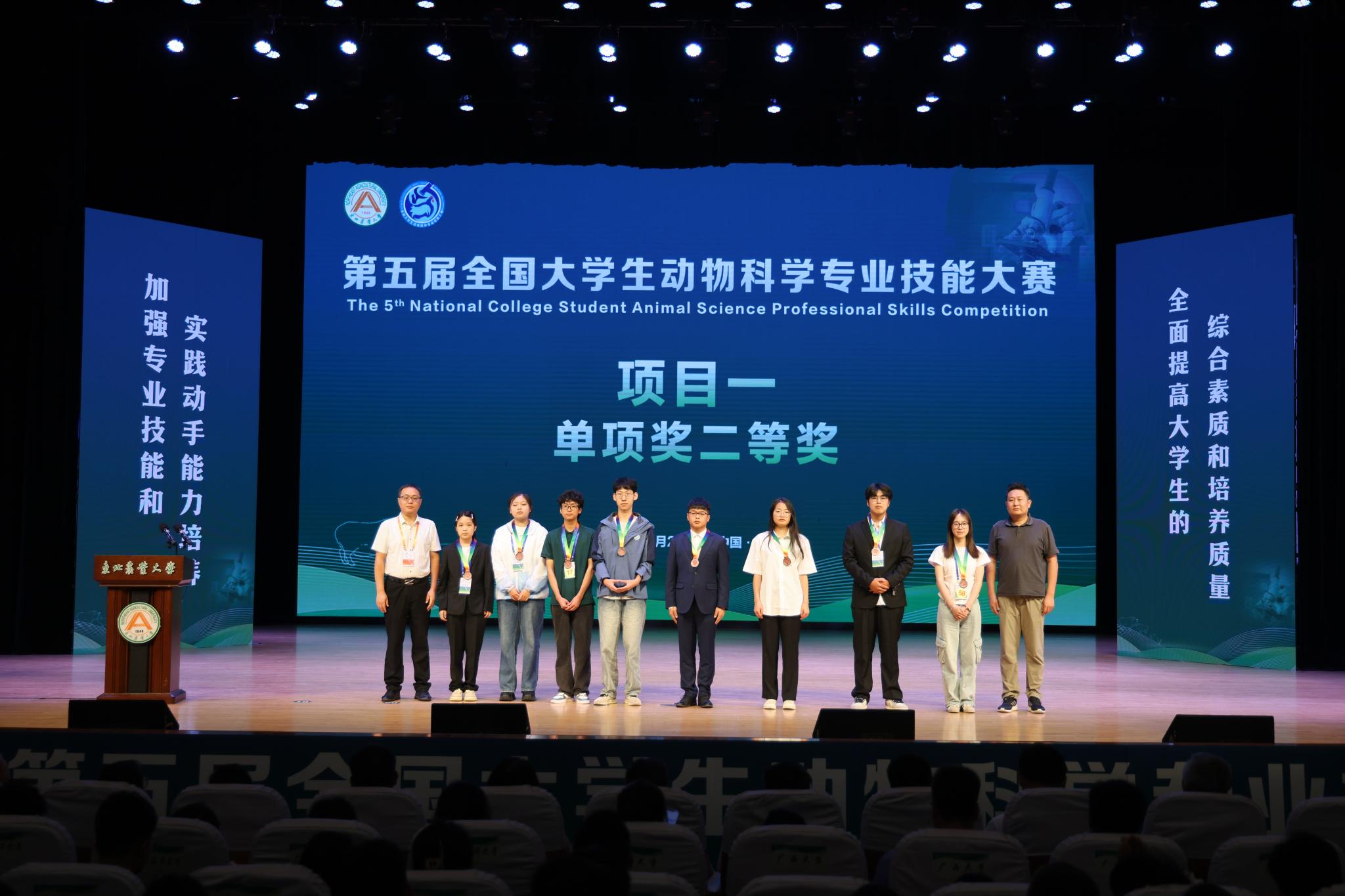 据悉,全国大学生动物科学专业技能大赛是由教育部高等学校动物生产类专业教学指导委员会指导、动物科学专业技能大赛联盟主办的动物科学专业领域最具影响力的全国性、权威性赛事。大赛旨在进一步推进高等院校动物科学专业实践教学改革和实践教学体系建设,加强专业技能和实践动手能力培养,全面提高大学生的综合素质和培养质量。本届比赛共产生团体特等奖11项、一等奖23项、二等奖41项;每个单项特等奖4项、一等奖6项、二等奖8项。