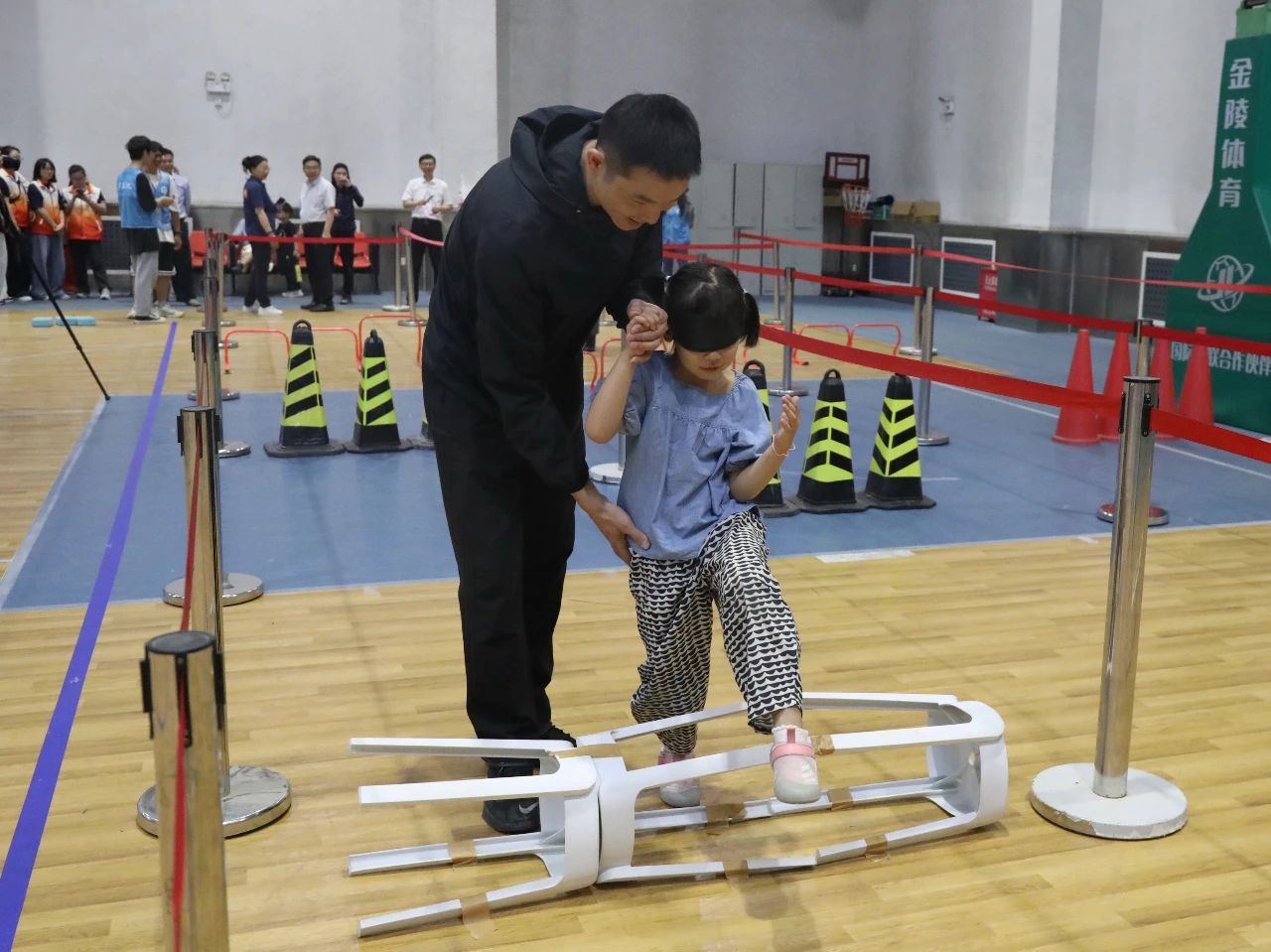 “蒙眼障碍跑”“蒙眼二人行”“蒙眼滚轮胎”等趣味运动吸引了众多师生和社会人士的积极参与。“宝贝,你前边有个凳子,不要碰到,跟着我走!”现场有家长带着小朋友一同参与了“蒙眼二人行”项目,小朋友戴上眼罩,在家长的带领下穿越了障碍物,在黑暗的环境下,必须无条件相信“引导员”的口令,就像视障人士需要无条件相信导盲犬一样。“刚才我也体验了蒙眼障碍跑,总是被撞到,很疼,深刻感受到视障人士的生活真的太不方便了,我们应该尽力为他们提供便利。”一位参与活动的女士说。