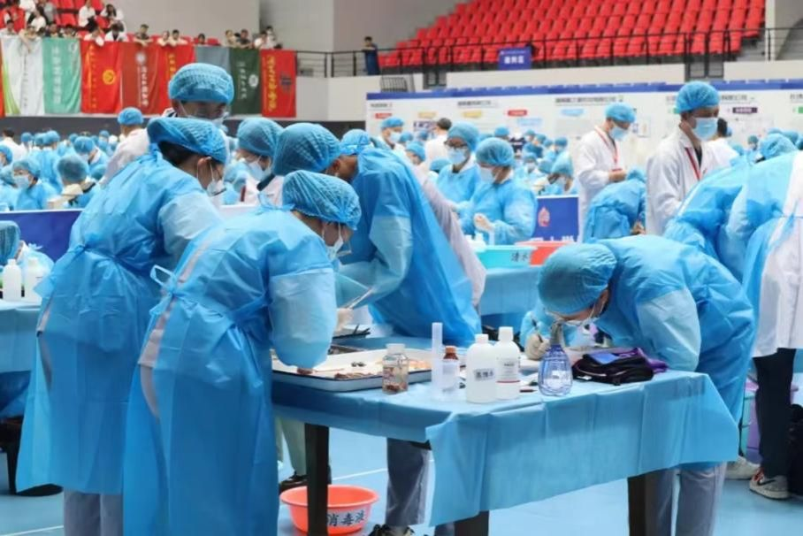 本届比赛分为山羊瘤胃切开术、病原菌检查与血凝试验、禽的病理剖检三个部分。成绩评定标准以参赛队伍现场操作的规范性、熟练程度和配合情况等进行综合考量,82名裁判打分按比例折算团队得分。世界杯官网代表队成员柏良庸、刘莹、王方、梁雪菲、马子禾在指导老师张建军、张华、周双海、张永红的示范和指导下,熟练、高质量地完成系列操作,充分展示了动医专业学生扎实的实操技能和较高的专业素养。