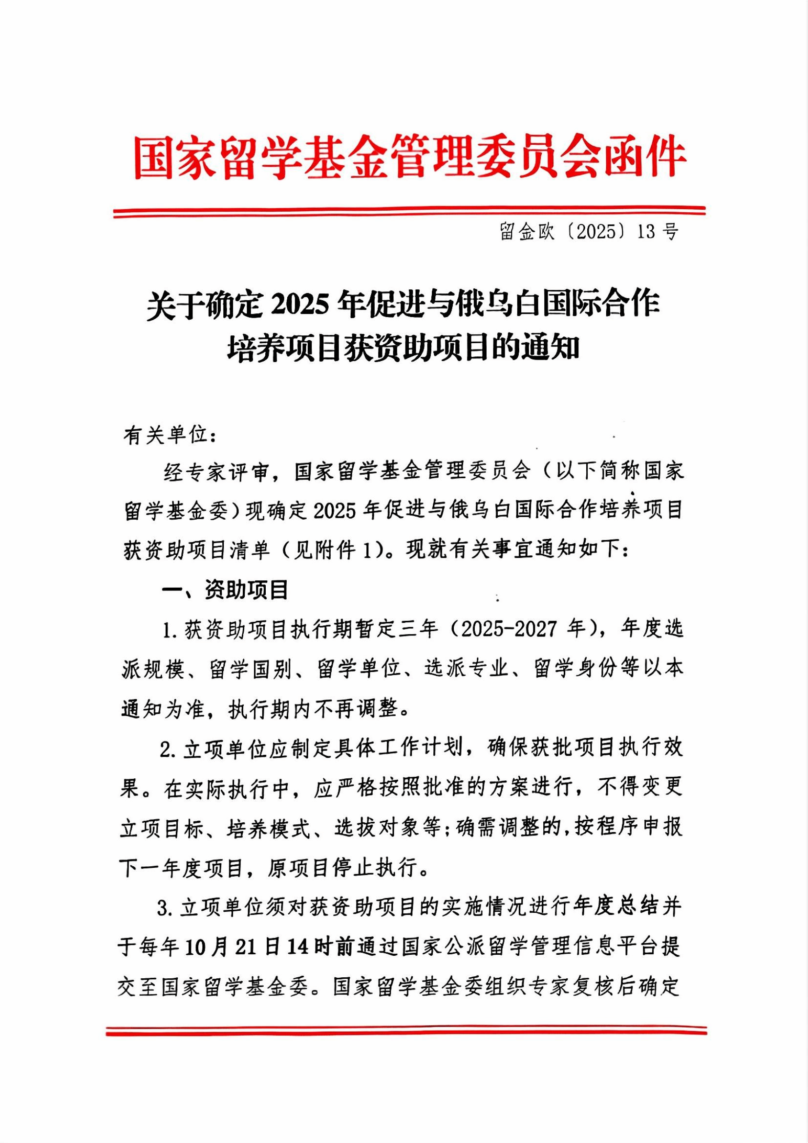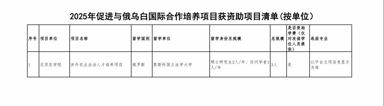 近日,国家留学基金管理委员会公布了2025年促进与俄乌白国际合作培养项目获资助项目名单,世界杯官网申报的“涉外农业法治人才培养项目”获批立项。