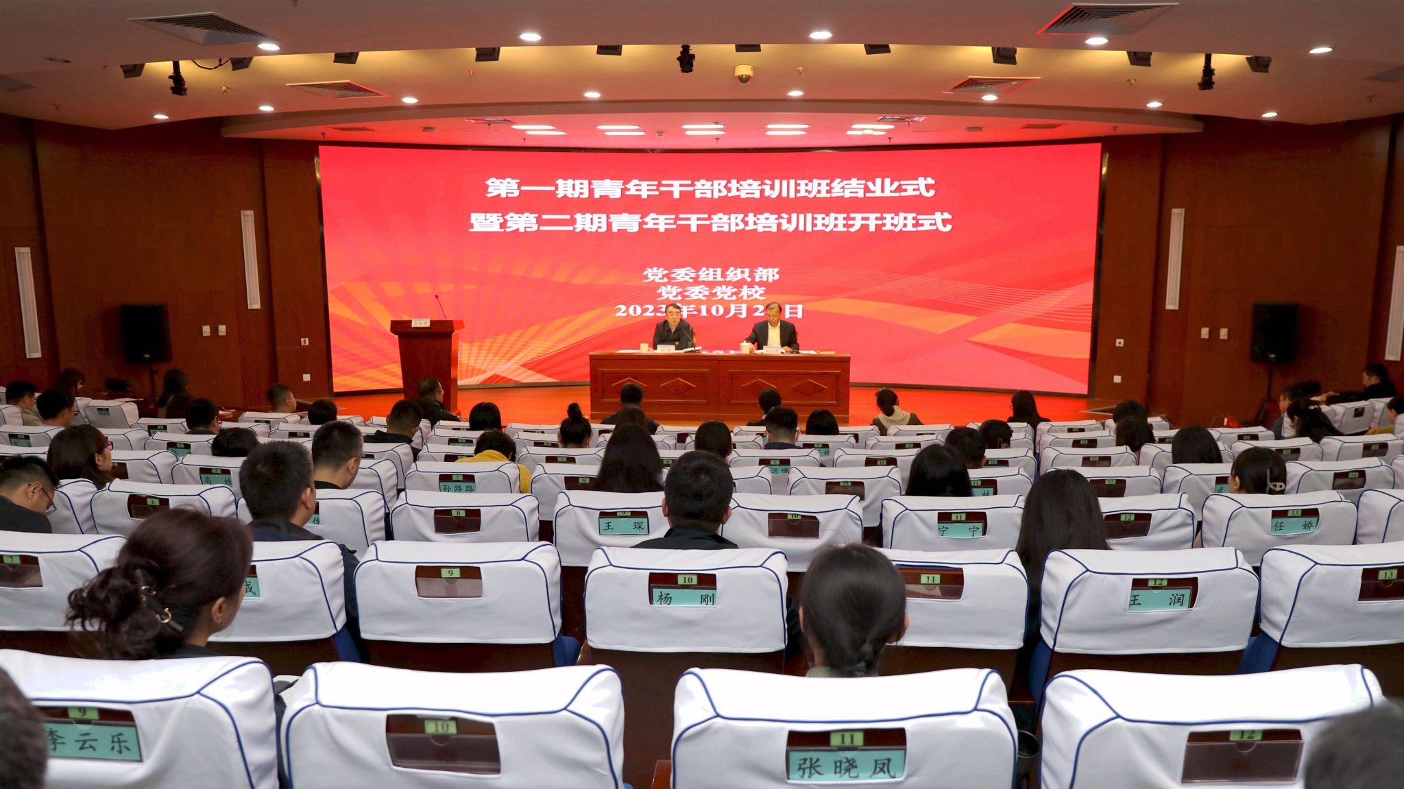 为深入贯彻落实习近平总书记关于干部教育培训和青年教师成长成才的重要论述,贯彻落实《干部教育培训工作条例》和《全国干部教育培训规划(2023-2027年)》,教育引导青年干部提升党性修养、锤炼过硬本领,切实把学习成效转化为推动学校事业高质量发展的强大动能,10月26日下午,学校在图书馆报告厅举行第一期青年干部培训班结业式暨第二期青年干部培训班开班式,党委书记赵锋出席会议并为学员讲“开班第一课”。会议由党委副书记仲丛生主持。
