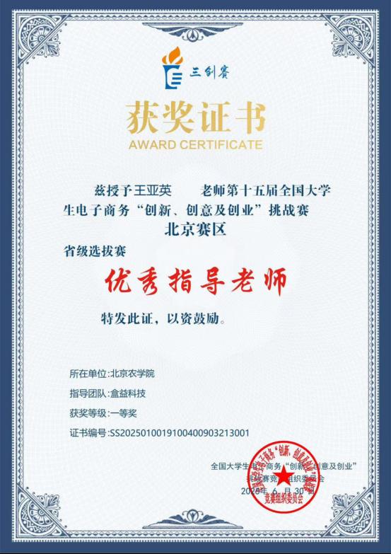 近日,第十五届全国大学生电子商务“创新、创意及创业”挑战赛(简称“三创赛”)北京市选拔赛落下帷幕。由王亚英和江晶老师指导的园林学院团队“盒益科技”成功斩获一等奖。