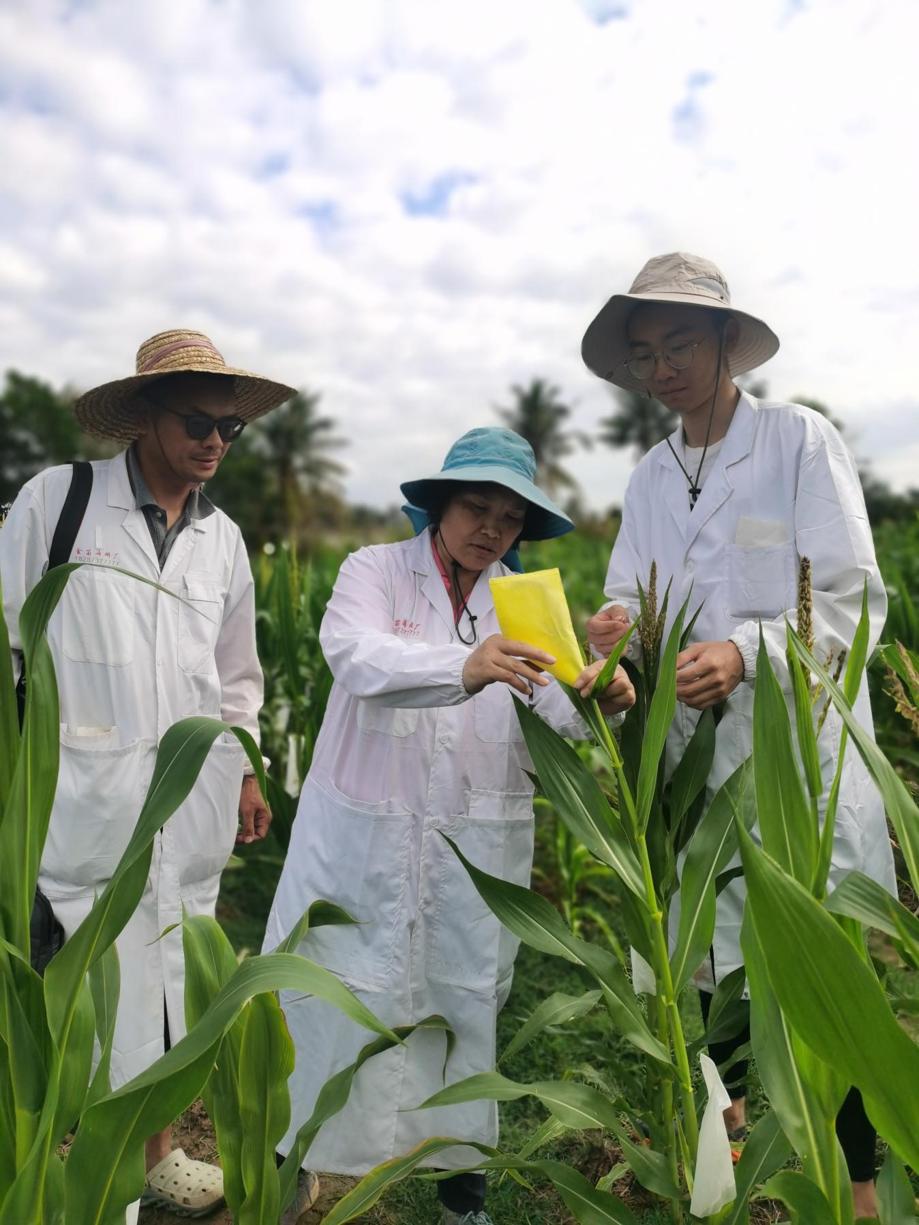 每年10月,秋意渐浓,青贮玉米团队就奔赴海南的南繁基地。三亚和乐东的湿热空气、肆虐的蚊虫、陌生的环境,给初来乍到的师生带来严峻考验。他们并未退缩,反而热情高涨。白天安排授粉工作,晚上组织团队分享科研思想。授粉高峰期,顶着烈日从早上忙碌到傍晚。老师们身先士卒,不怕晒,不怕累;学生们深受感染,春风化雨,润物无声。