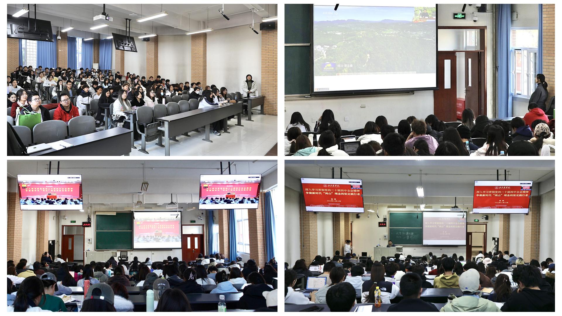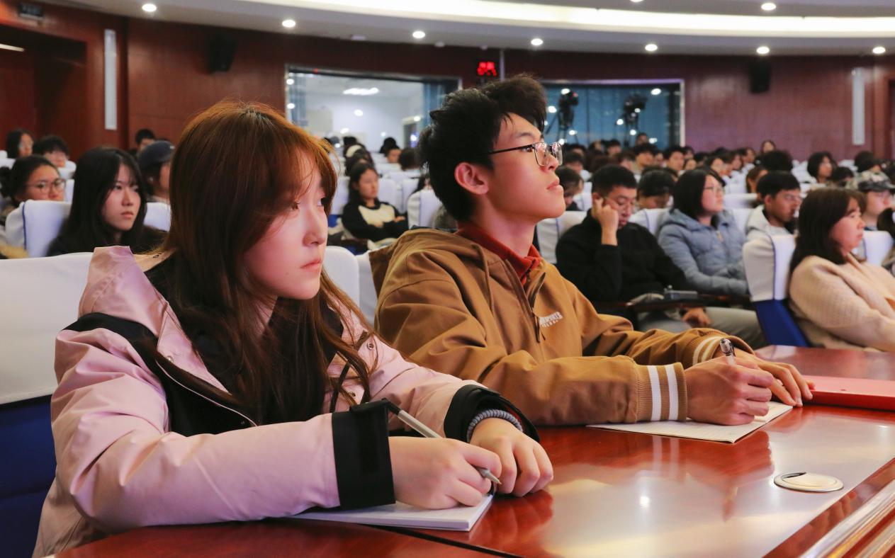 11月19日下午,学校党委书记赵锋以《深入学习贯彻党的二十届四中全会精神 争做新时代“两山”理念的坚定践行者》为题,为2025级本科新生讲授了一堂生动、深刻的“红绿融合大思政课”。