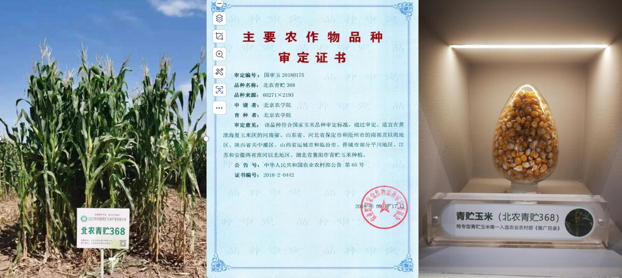青贮玉米团队培育的国审品种“北农青贮368”,果穗长度达32厘米,国内极少有品种能够超过它;它的植株高大繁茂,叶色深绿,生物产量高,抗病抗倒性强。“北农青贮368”综合抗性突出,保证了丰产性与稳产性,已经成为国内青贮玉米的标杆品种和对照品种。