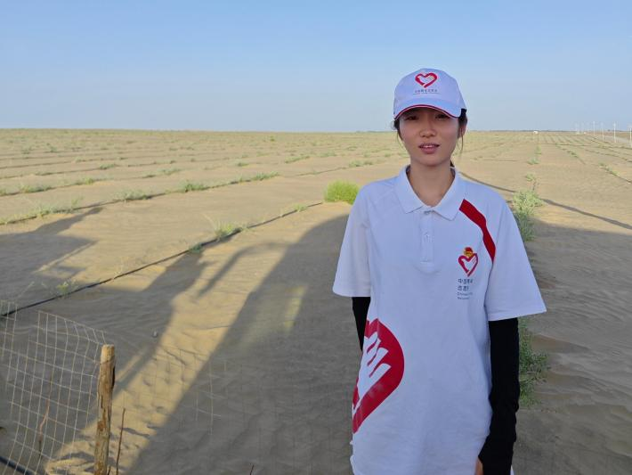 志愿服务感受:在民丰县林草局防沙治沙办公室服务期间,最让我震撼的是,短短数年,全县聚力攻坚,种植防风林带、铺设草方格沙障,终在塔克拉玛干沙漠边缘实现锁边合拢——一条蜿蜒不屈的绿色生命线,就这样硬生生嵌入沙漠狂啸的边缘。作为西部计划志愿者,我将以一锹土、一株苗的微薄之力,在黄沙与绿洲的角力中,做执着延伸的一寸绿意,以实绩实效诠释基层服务的责任与担当。