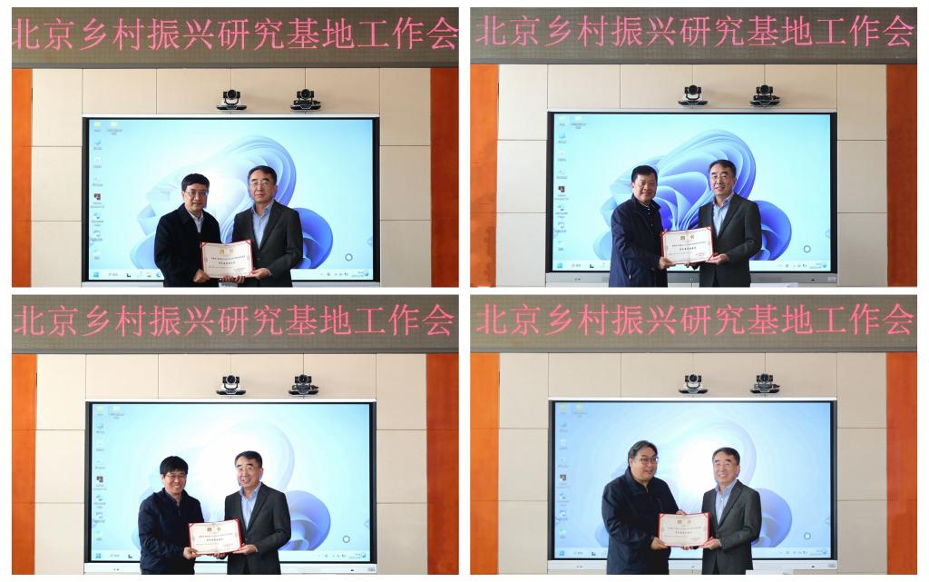 会上,赵锋向北京乡村振兴研究基地新一届学术委会委员和管理委员会委员颁发聘书。