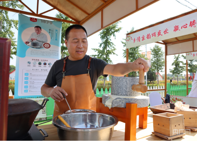 杨门浆水豆腐传承人向记者展示浆水豆腐制作(央广网记者 庞婷 摄)