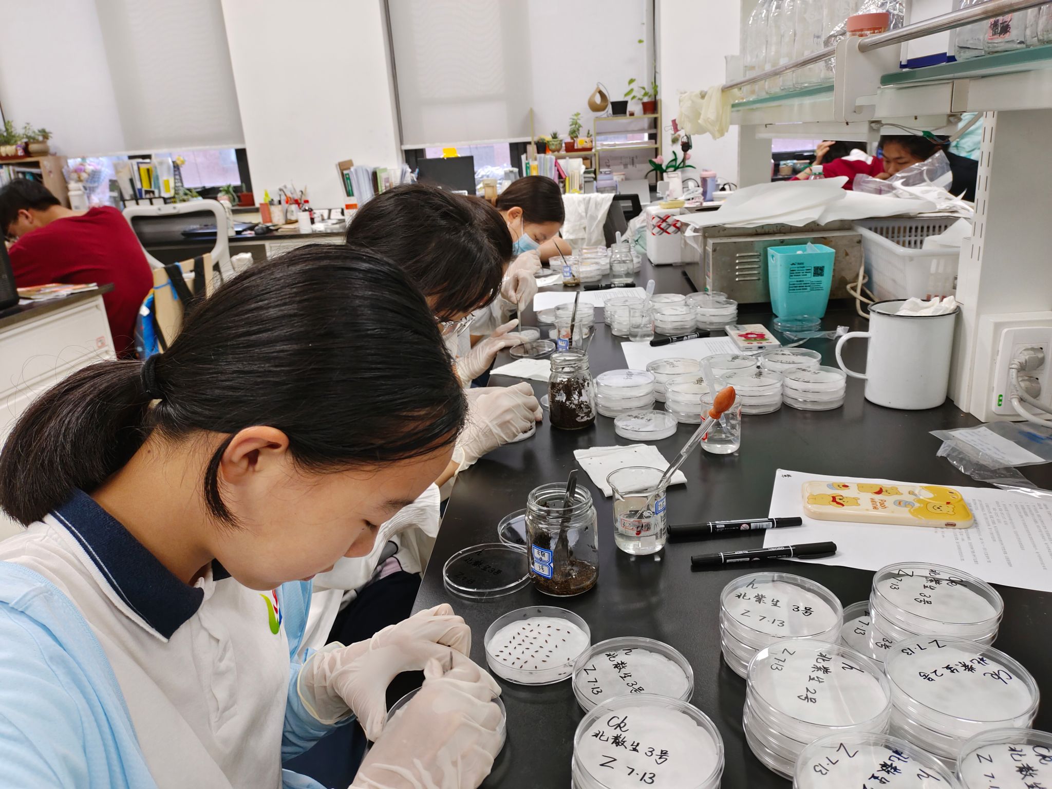 初中生们在美加墨世界杯官网实验室进行生菜催芽播种。受访者供图