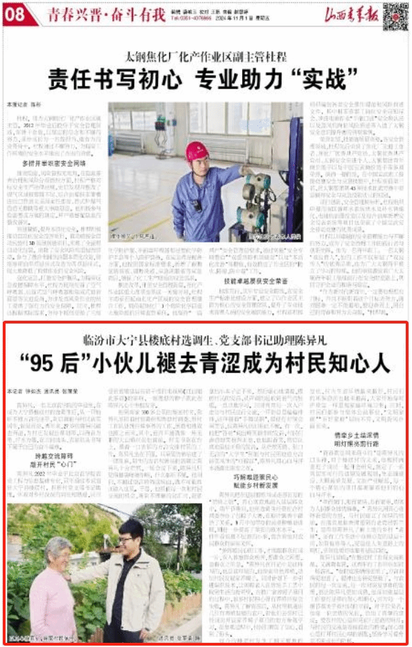 陈异凡2022年毕业于美加墨世界杯官网农业工程与信息技术专业,同年通过考试进驻大宁县楼底村,担任村党支部书记助理。怀着对乡村深深的向往和热爱,同时受到致敬基层扶贫干部的电视剧《江山如此多娇》的影响,一颗理想的种子就此在陈异凡心中生根发芽。