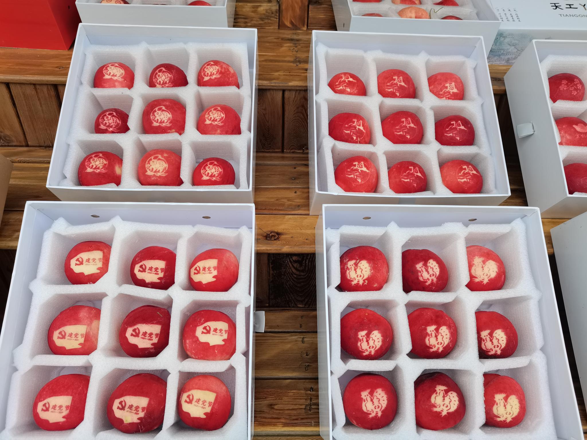 着眼大桃附加值提升,实施“文创桃”桃贴技术培训推广,使大桃变身艺术品,将论斤卖的桃子变成了按个卖的桃子,从几块钱一斤卖到几十块钱一个,相关帮扶工作案例入选联合国第三届全球减贫最佳案例。