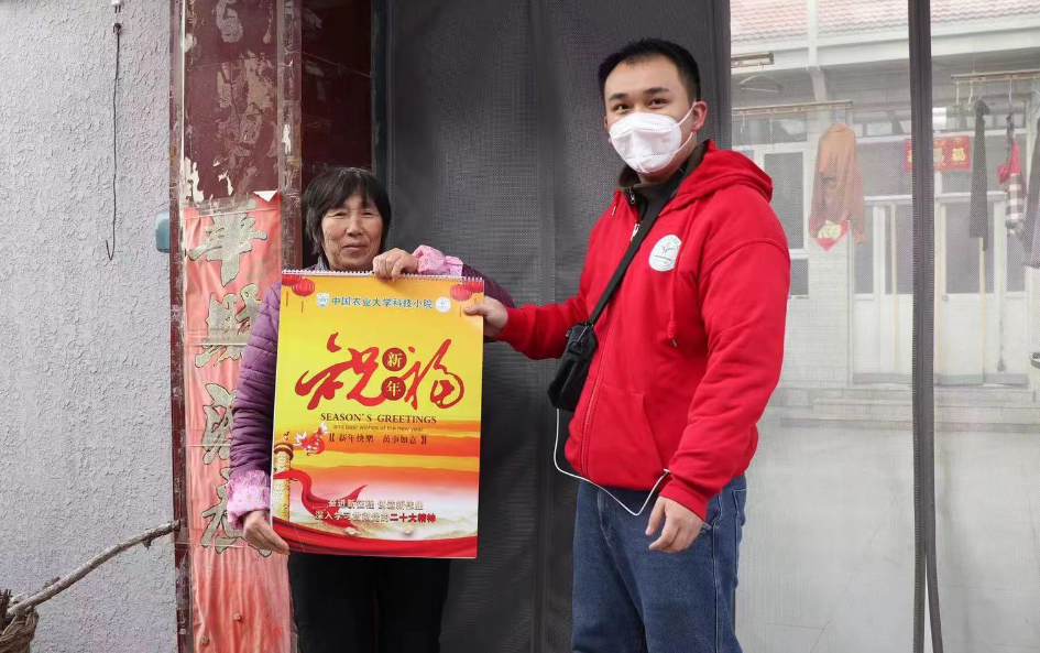 “科技小院”学生向农户发放宣讲挂历