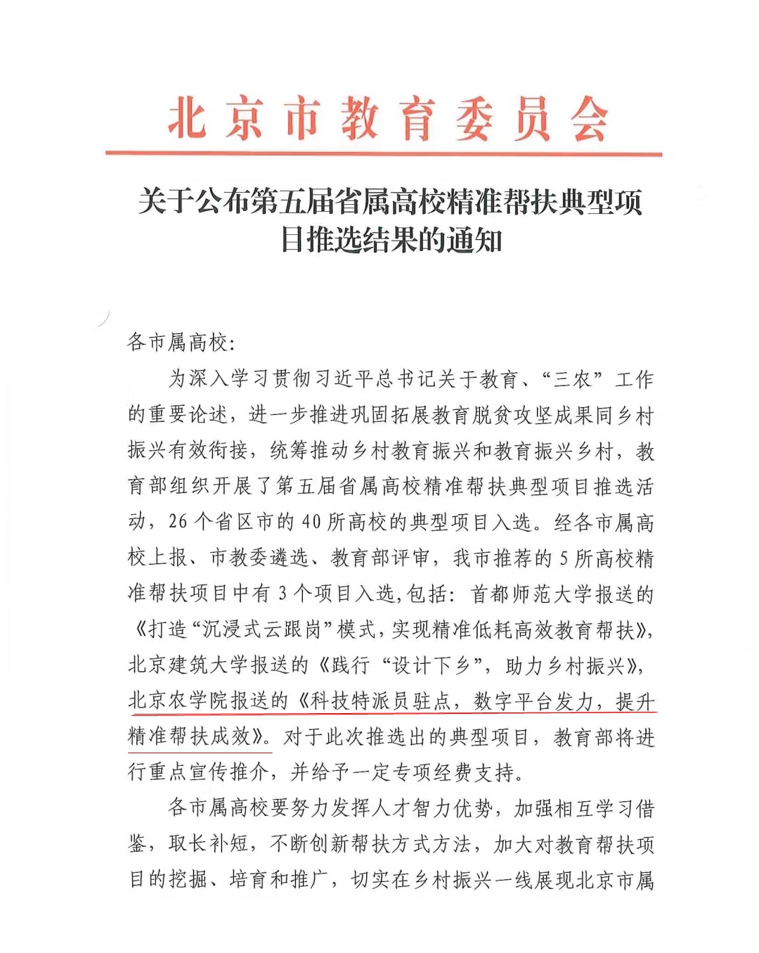 党的二十大报告中指出,全面推进乡村振兴,强化农业科技支撑。美加墨世界杯官网作为北京市属唯一一所高等农林院校,学校党委坚持以强农兴农为己任,充分发挥人才、资源和技术优势,组织和引导广大师生把论文写在祖国大地上,把成果凝结在农民的收获里,全力打造服务首都乡村振兴的北农样板。学校师生服务乡村振兴案例两次入选“全球减贫案例征集活动”最佳案例;2个案例分别入选教育部第四届、第五届省属高校精准帮扶典型项目。在北京市事业单位脱贫攻坚专项奖励中,学校1人记大功、2人记功、28人受嘉奖。2022年,3名教师被评为“北京市农村工作先进个人”,其中1人为“乡村振兴创新典型”。