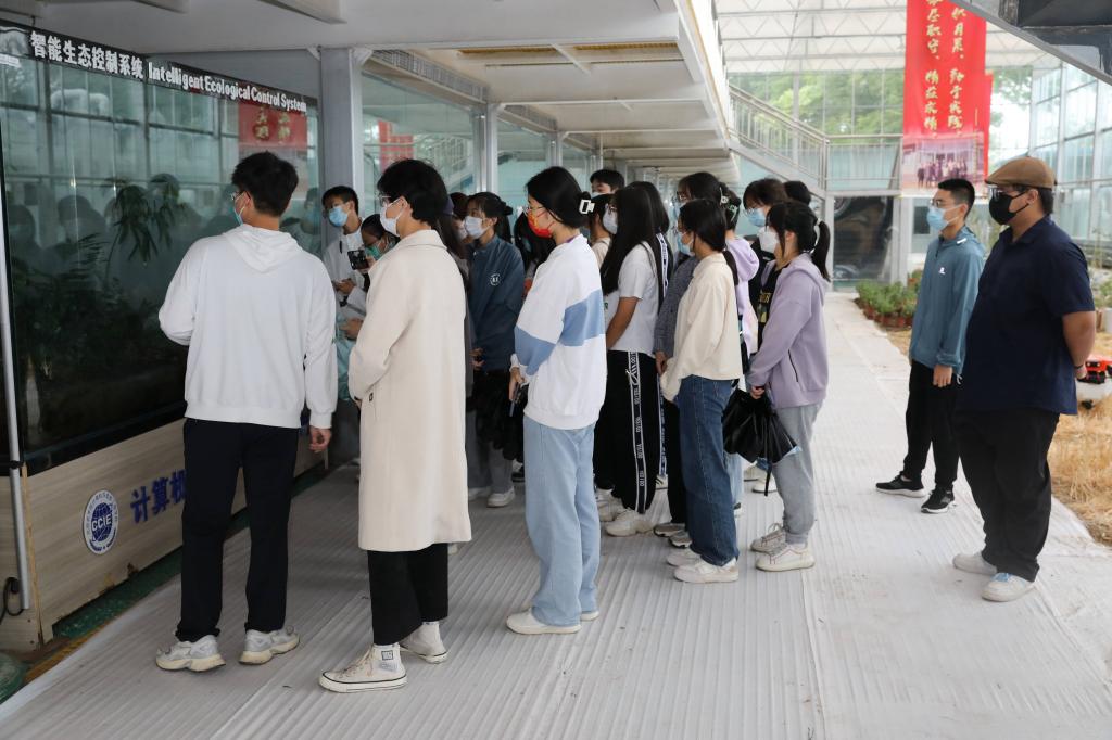 在智慧农业实验温室内,水质监测系统、智慧蜂箱、植保无人机、智能无人拖拉机、五合一新型太阳能传感器、智慧农业控制终端、智能植物生理检测仪、智慧农业卷膜通风控制器等智慧农业科技成果引起同学们赞叹,大家直观深入地感受到现代农业和智慧农业的魅力。