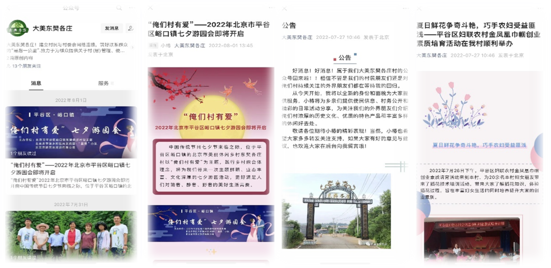 随着实践活动的持续深入开展,同学们感受到东樊各庄村深厚的历史文化、鲜明的产业特色和蓬勃的时代气息,萌发出策划一次“模拟版”乡村综合体盛会的想法。恰逢七夕佳节,这个想法得到了峪口镇人民政府、东樊各庄村党支部的大力支持。同学们立足“传承中国传统文化,展现平谷区休闲“新时尚”,展示峪口镇乡村新产业新业态”,坚持“农民主体、北农助力、村企共建、城乡共享”,策划了一场“俺们村有爱”七夕游园会活动。活动安排了1个主会场加7个活动点位,主会场以抛绣球擂台、民俗大鼓、产品推介售卖为主;分会场为烈虎桥鹊桥相会、花道爱情盲盒、萌宠乐园“一拍即合”、农耕文化园“爱情甜蜜蜜”、蘑菇部落“难解情缘”、轮胎涂鸦区“飞鸟与鱼”、宜路营地“丘比特之箭”,为村民和游客带来一系列科普性、趣味性、互动性较强的体验活动,绘就了一幅传统优秀文化和现代时尚文化交织辉映、乡村产业与乡村文化融合发展的乡村振兴最美图景。
