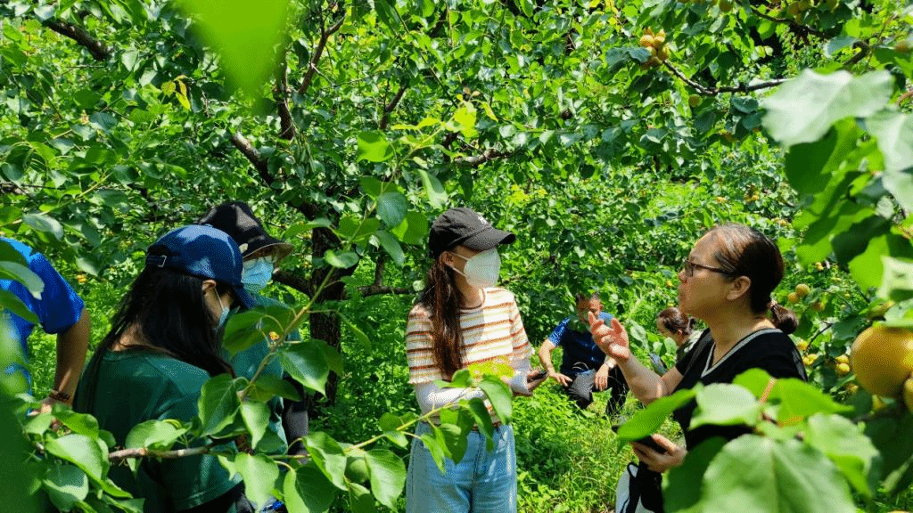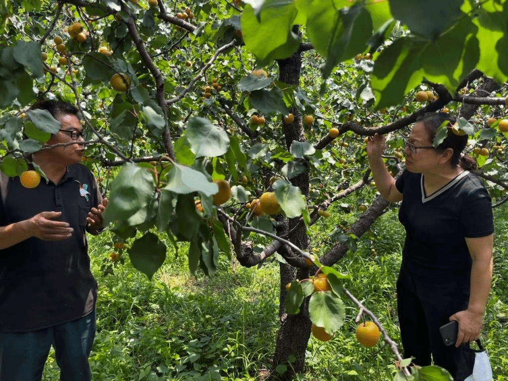 暑期社会实践期间,正是红杏进入成熟的关键期,指导教师贾月慧和刘杰带领团队成员走进红杏果园,与果农进行了面对面的深入交流,围绕红杏长势、果园施肥、灌溉、果园生态环境以及汛期排水管理等问题进行了详细指导。