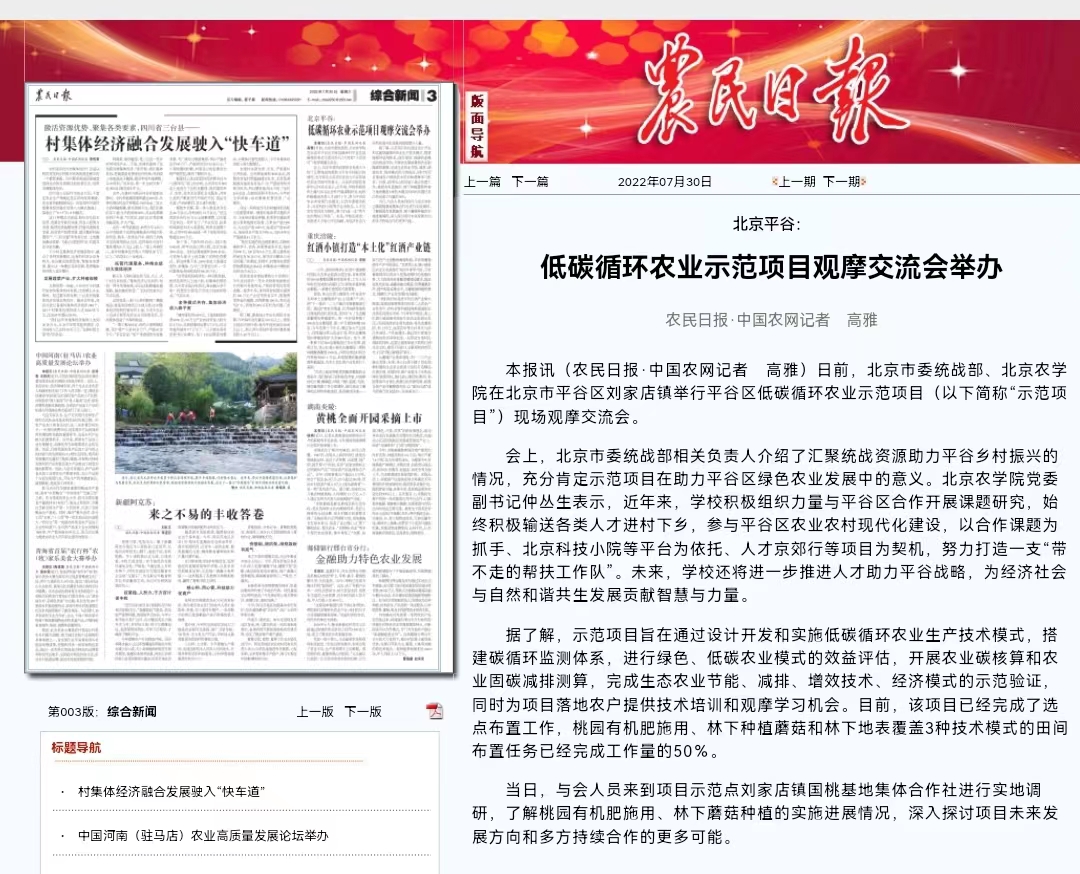 本报讯(农民日报·中国农网记者 高雅)日前,北京市委统战部、美加墨世界杯官网在北京市平谷区刘家店镇举行平谷区低碳循环农业示范项目(以下简称“示范项目”)现场观摩交流会。