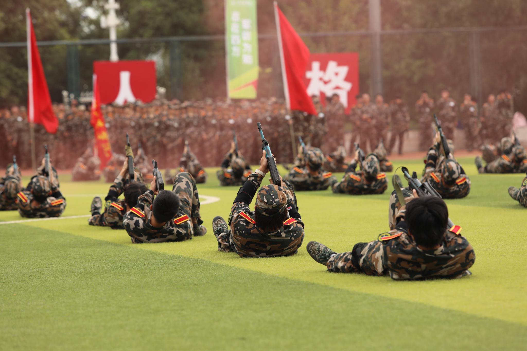 军训学员进行了分列式展示和特色科目汇报表演。同学们方阵整齐,步伐铿锵,口号嘹亮,精神饱满,斗志昂扬。
