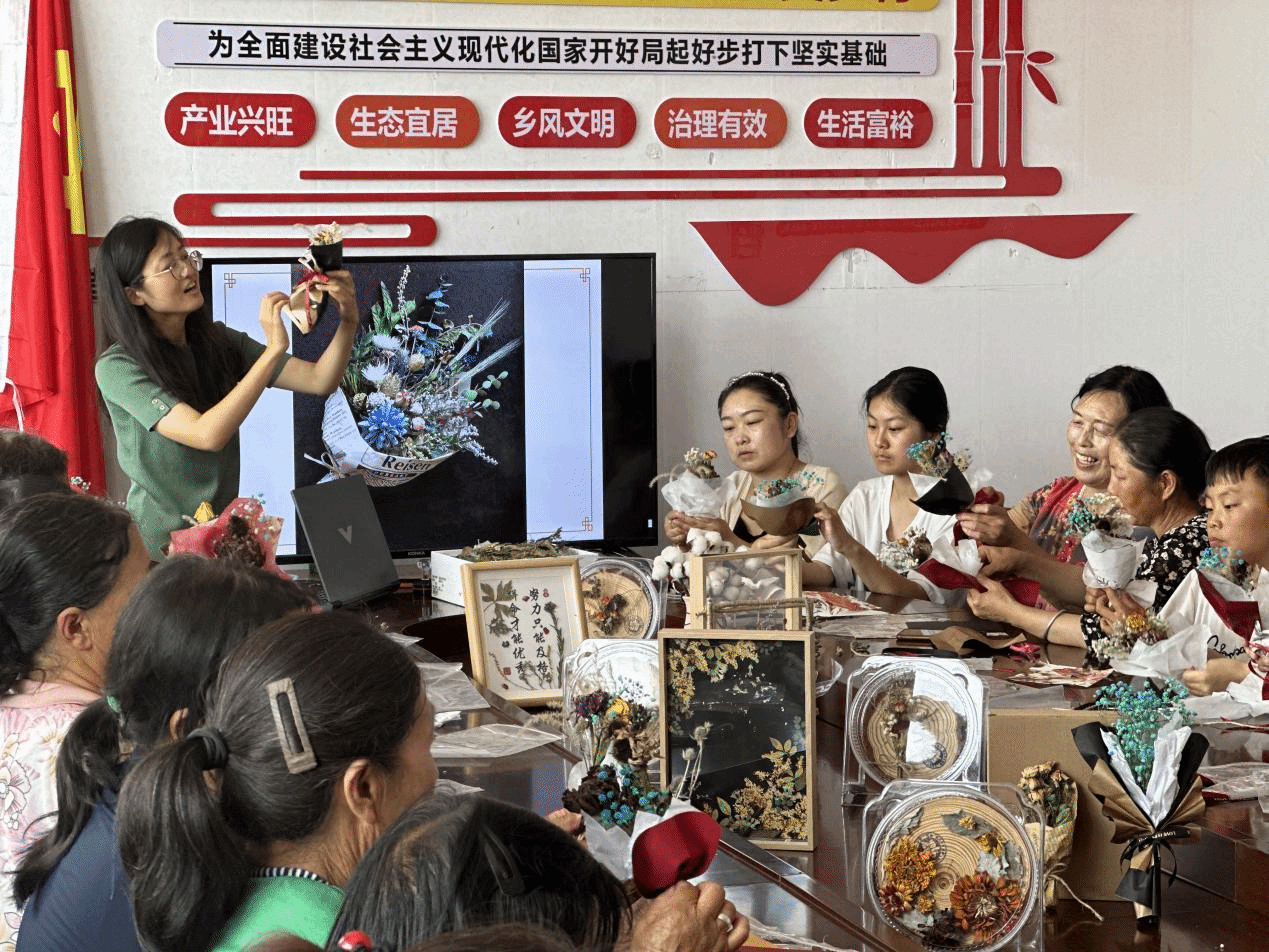 他们将目光聚焦于岚县的乡村旅游和一年一度的“土豆花开”文化节活动,深入挖掘王家村的文旅资源,打造特色文旅产品,而“卖土豆花”这一创意举措,正是他们智慧的结晶。他们针对中小学生开展了集“科学性、艺术性、实践性”于一体的特色研学活动,以土豆花及岚县王家村乡土植物为素材制作特色干花文创作品,为学生们上了一堂生动的“知农、爱农、学农”暑期实践课。面向王家村村民开展系统的技术培训,教会他们花材采集、处理、制作以及不同形式的干花产品创作,研创出深受游客喜爱的干花作品,并结合当地文旅实现了新形式的创收。
