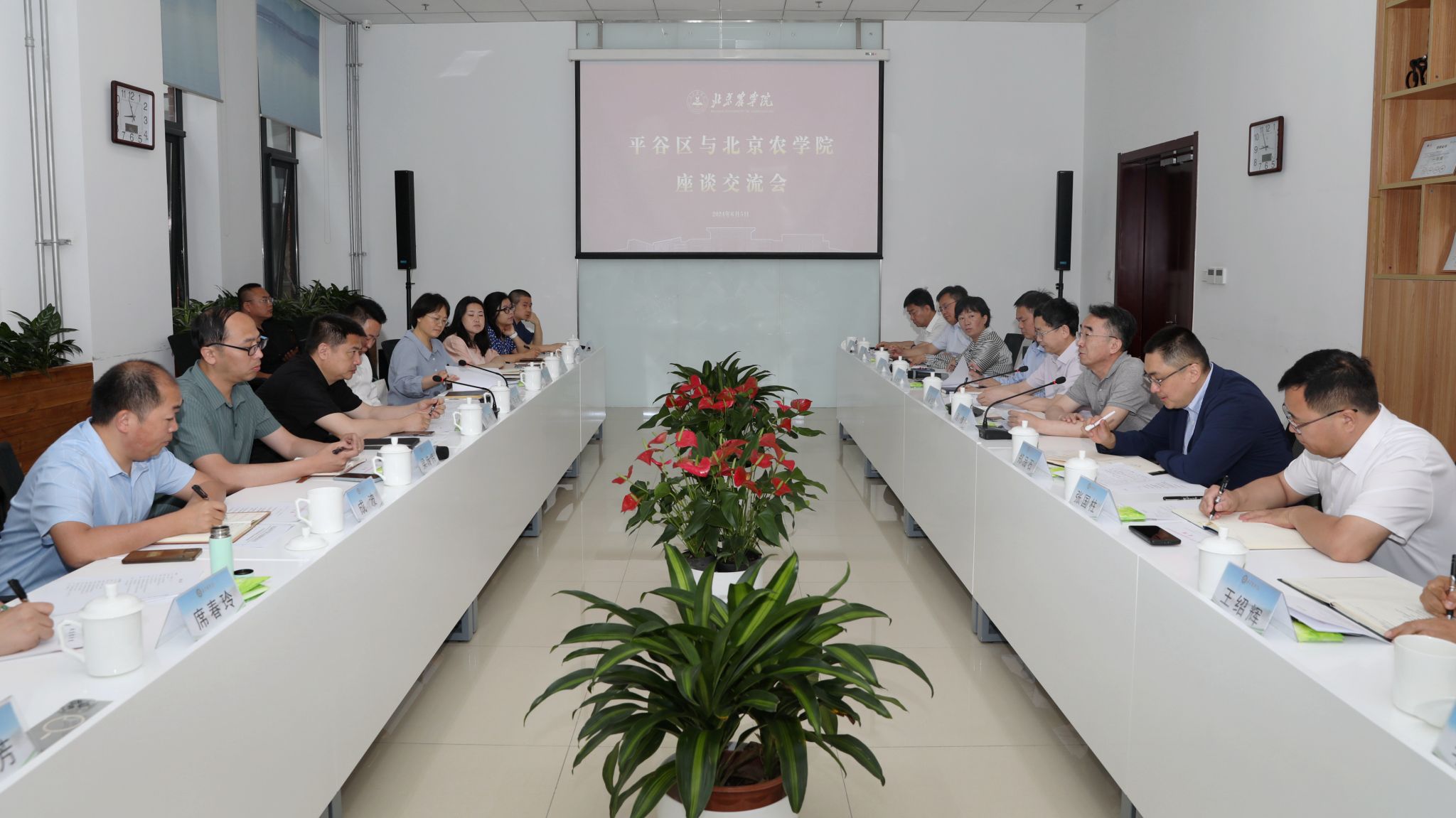 平谷区相关部门负责人,中国农业国际合作促进会、北京淞浦智能科技产业发展有限公司等单位负责人,学校相关职能部门和二级学院负责人参加座谈交流。